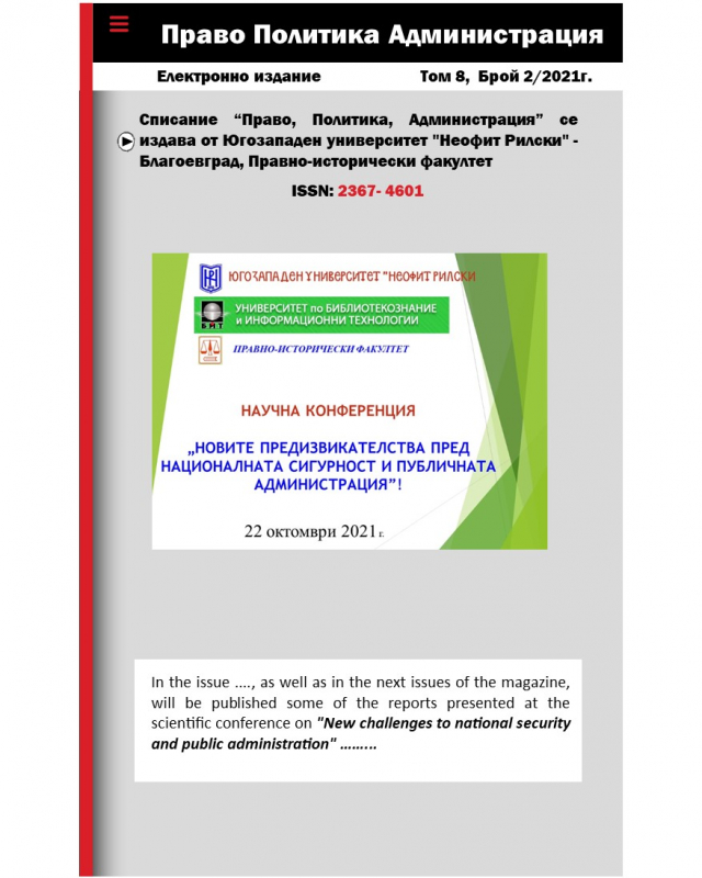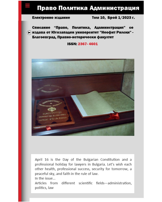 The journal provides access to articles of eminent and young scholars and practitioners in various fields of legal science and public administration. It reflects interesting and topical events (conferences, discussions and seminars).